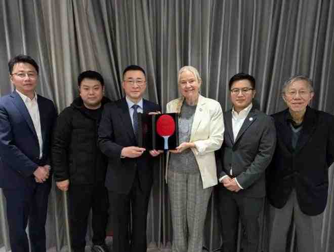 2025年12月6日,上海體育大學校務委員會主席李崟和國際乒聯(lián)主席、國際奧委會委員佩特拉·索林女士在成都會面交流,共商國際乒聯(lián)博物館和中國乒乓球博物館(以下簡稱“乒博館”)發(fā)展事宜。索林女士在交流中將法國總統(tǒng)埃馬紐埃爾·馬克龍簽名球拍正式移交予乒博館,該球拍是馬克龍總統(tǒng)近日到訪四川成都觀摩2025年國際乒聯(lián)混合團體世界杯賽事時,親筆寫下簽名并贈予索林主席的特殊禮物。這一球拍不僅是中法乒乓球交流活動中友好互動的珍貴延續(xù),也再次彰顯了乒乓球運動作為外交橋梁的持久生命力和獨特價值。