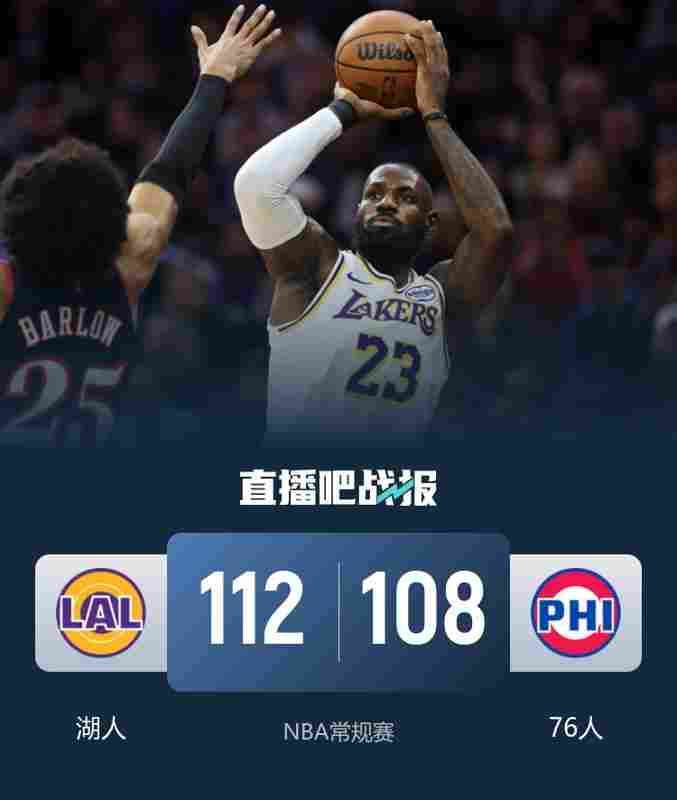 ??湖人勝76人回西部第2 東契奇buff拉滿 老詹收比賽 大帝21中4